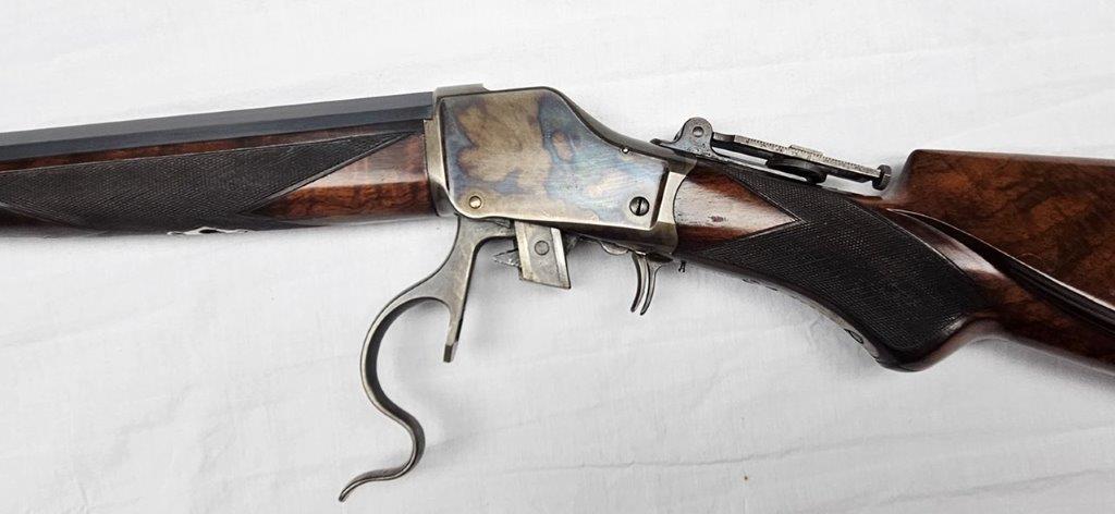 Extremely nice Winchester 1885. Wood has some small blemishes as expected but bluing and case hardening is vivid.